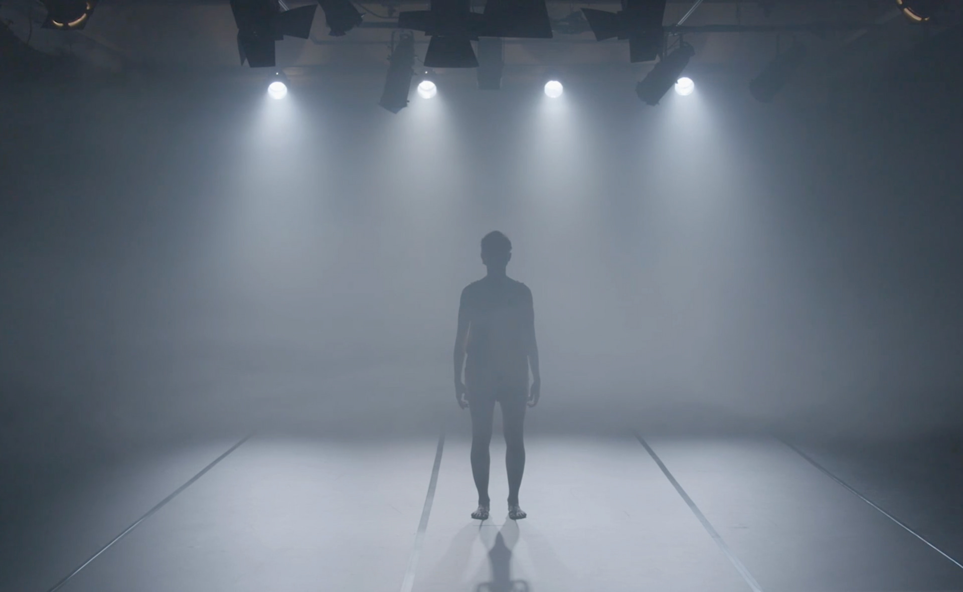 Caught between language and memory, the figure in the film is a dancer who, through movement, embodies the tension of untranslatability. She moves through two visual worlds. The first is the space of memory: a blue, fog-lit studio where childhood dissolves into fragments of the mother tongue. Then she passes into an industrial space of imposing proportions, the present in exile, where language simultaneously limits and transforms her. Navigating memory and language through movement, the figure translates emotions into a cinematic experience, a poetic dance of longing and the desire to belong.